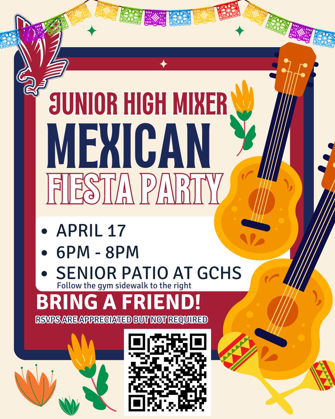 Jr. High Mexican Fiesta Block Party – April 17, 6-8pm Gibault Catholic High School: Junior High Party on the Patio RSVP or just show up, Bring a friend!
